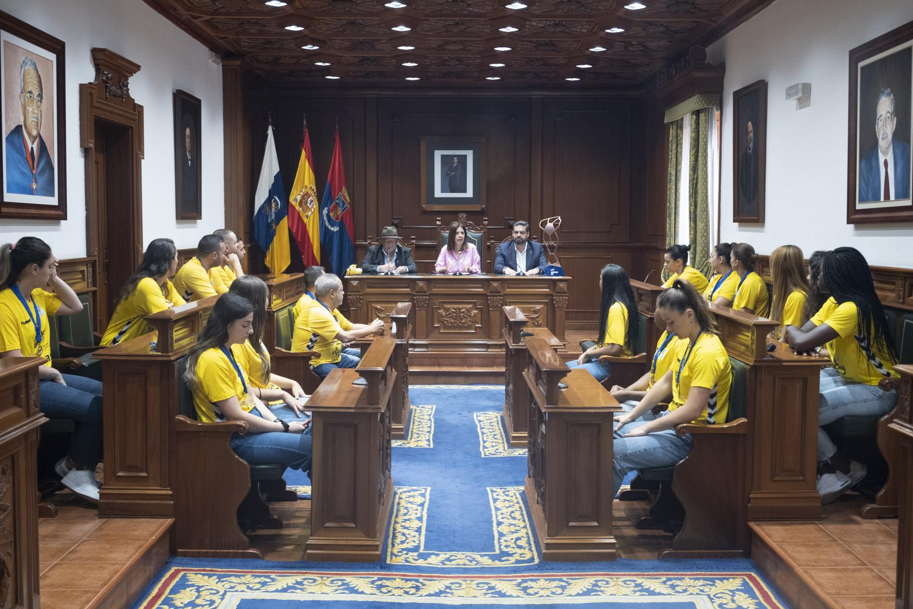 La alcaldesa de Telde, Carmen Hernández, y el concejal de Actividad Física y Deportes, Diego Ojeda, recibieron en la mañana de este lunes, en el Salón de Plenos, a las jugadoras y al equipo técnico del Rocasa Gran Canaria tras el hito de conseguir por tercera vez la EHF European Cup el sábado.