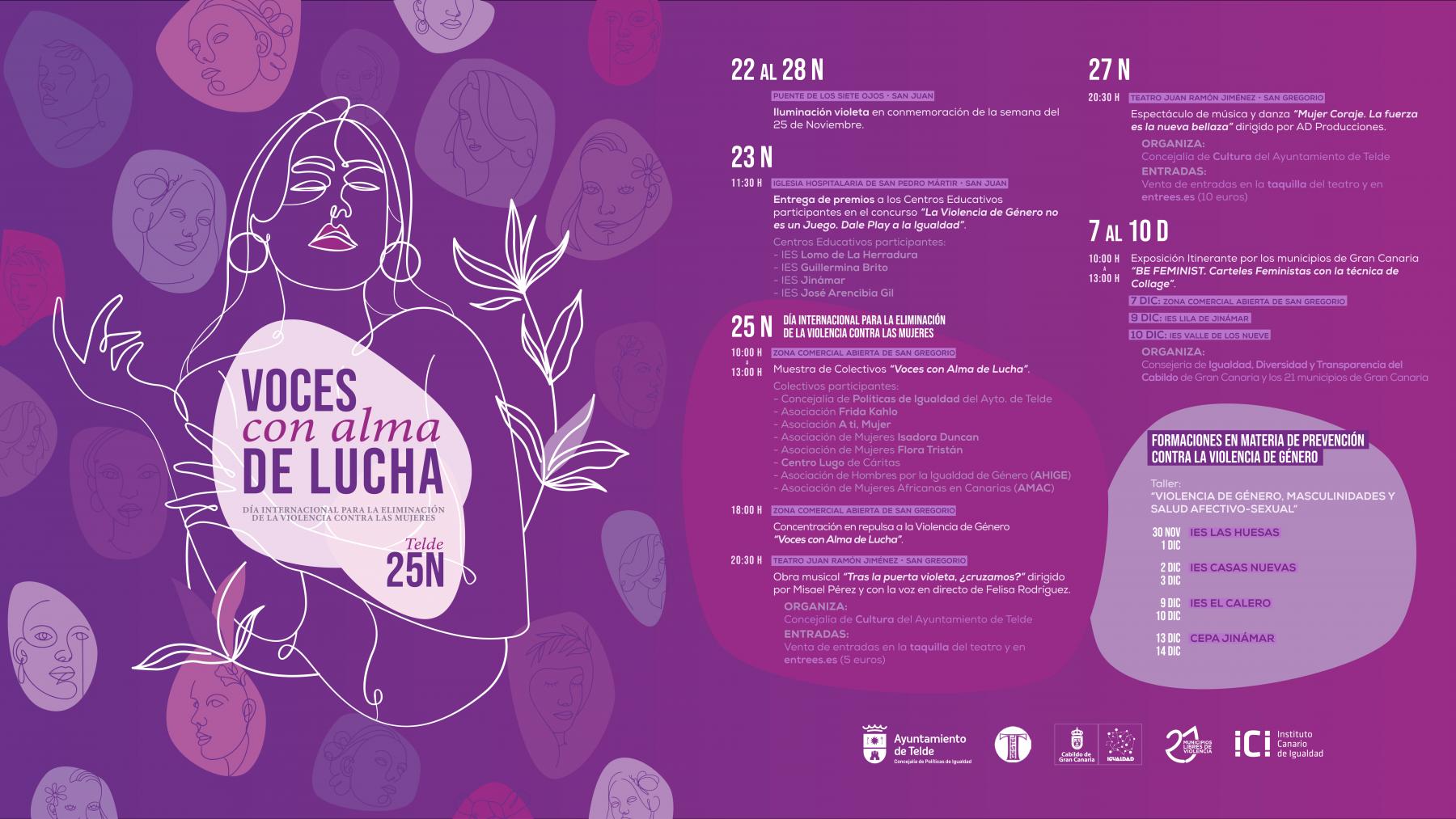 La campaña, que pretende remover consciencias a través de la información, visibilización y prevención, cuenta con la colaboración del Cabildo de Gran Canaria, el Insituto Canario de Igualdad, la Concejalía de Cultura y la empresa pública Gestel. En ella se concentran actos y acciones formativas y reivindicativas desde el próximo lunes, 22 de noviembre, y finalizarán el próximo martes, 14 de diciembre.
