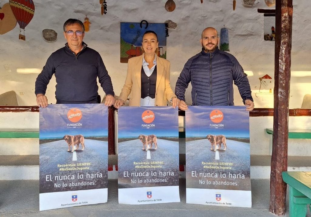 La Fundación Affinity en Canarias ha facilitado, además, al área de Bienestar Animal, cartelería contra el abandono para colocar en diferentes dependencias municipales. Por lo que, en los próximos días, las diferentes concejalías y espacios de la ciudad lucirán dichas impresiones bajo el lema Él nunca lo haría, no lo abandones, potenciando el mensaje que recuerda que los animales “no son un juguete”.