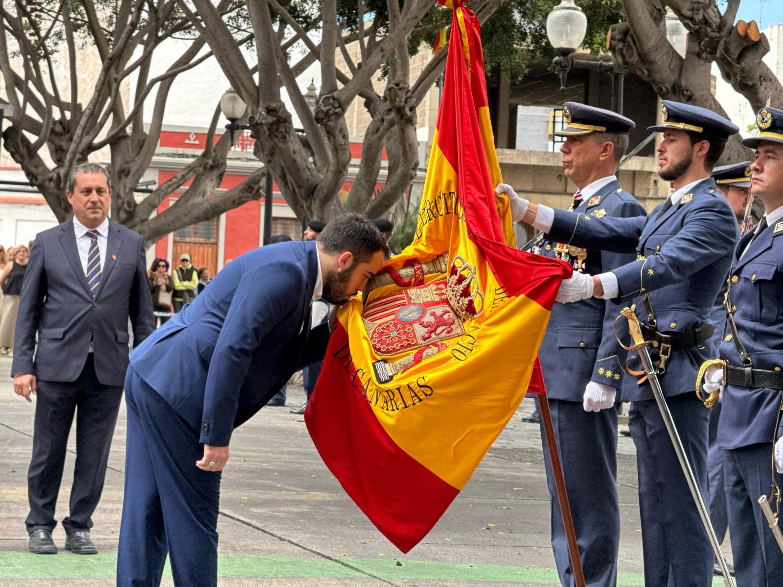 A la llegada del general jefe del Mando Aéreo de Canarias, Francisco Javier Vidal, se recibieron los honores, y se pasó revista a las fuerzas formadas, mientras el alcalde ocupaba su lugar. Tras ello, el general se dirigió a los asistentes para agradecer su presencia. De esta manera, daría comienzo el acto central de la Jura de Bandera.