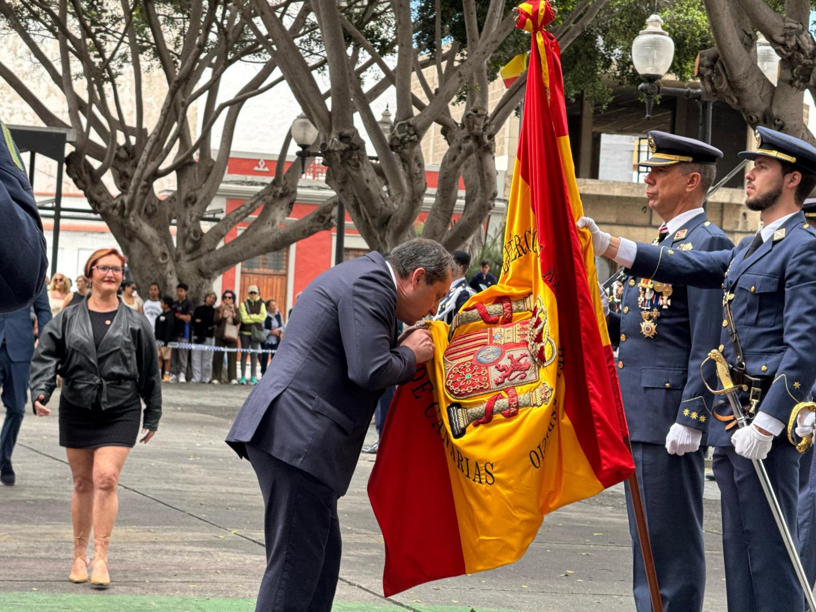 A la llegada del general jefe del Mando Aéreo de Canarias, Francisco Javier Vidal, se recibieron los honores, y se pasó revista a las fuerzas formadas, mientras el alcalde ocupaba su lugar. Tras ello, el general se dirigió a los asistentes para agradecer su presencia. De esta manera, daría comienzo el acto central de la Jura de Bandera.