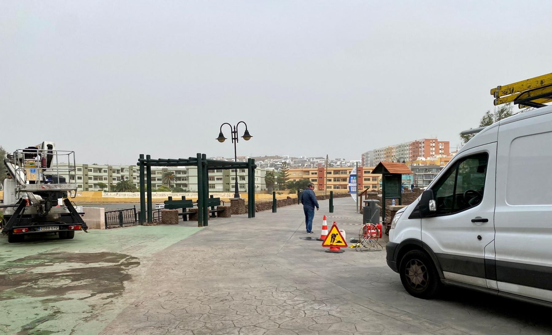 TRAS UNA DENUNCIA DE ONDA GUANCHE, EL GOBIERNO DE TELDE SUSTITUYE FAROLAS DEL VIAL COSTERO POR UN TUBO DE FONTANERÍA CON UN FOCO DEL CHINO