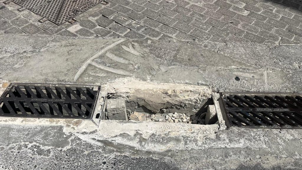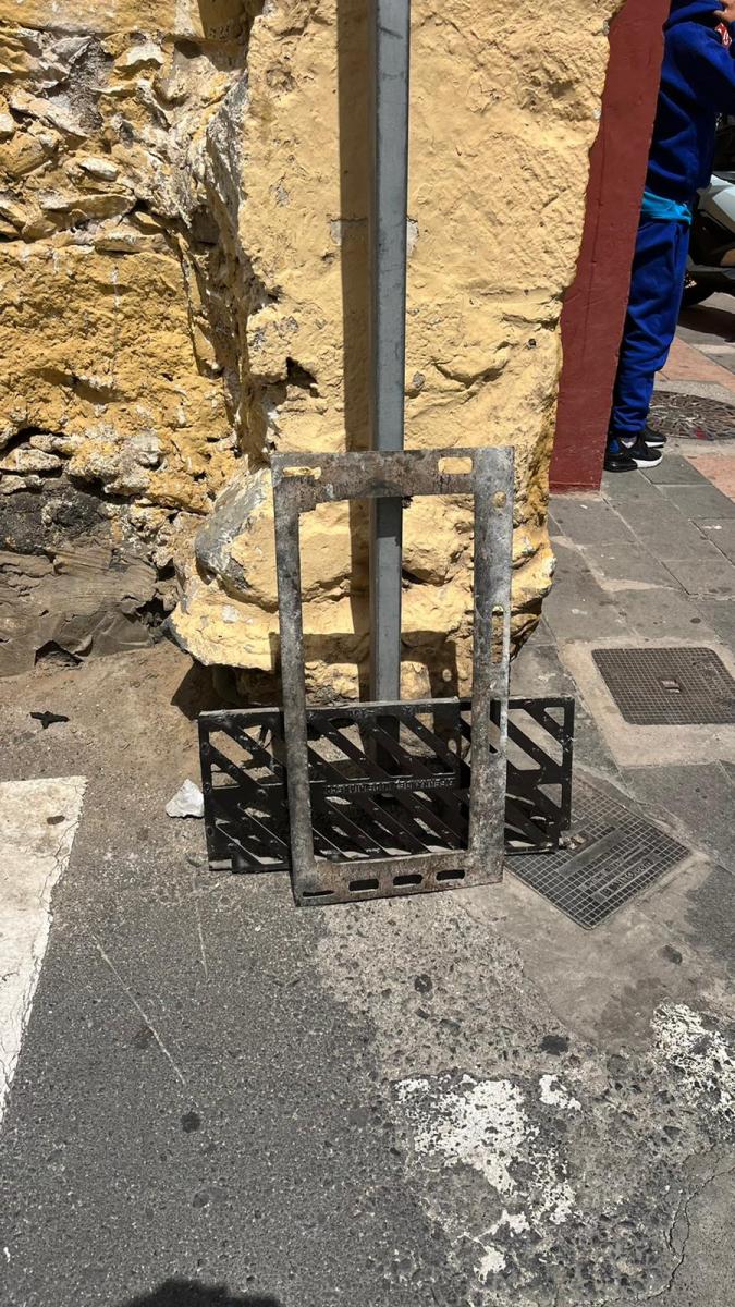 Un imbornal saltó por los aires este viernes al paso de un vehículo por la Calle Cervantes (esquina con Patricio Pérez Moreno), en pleno San Gregorio, dejando un hueco peligroso para vehículos y transeúntes. Voló la rejilla y el marco cuando la pisó la rueda del coche. Mientras el gobierno sigue de fiesta y buscando como pagar facturitas a los suyos. Telde se cae a cachos y el gobierno continúa desmantelando áreas municipales para fanfarria, fotos y propaganda.