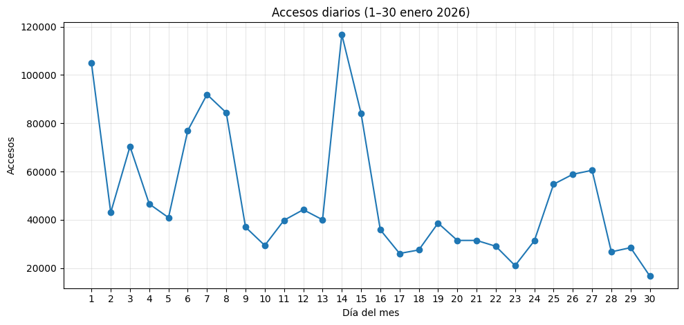 | Estadísticas diarias Enero 2026 | ||||||||||||