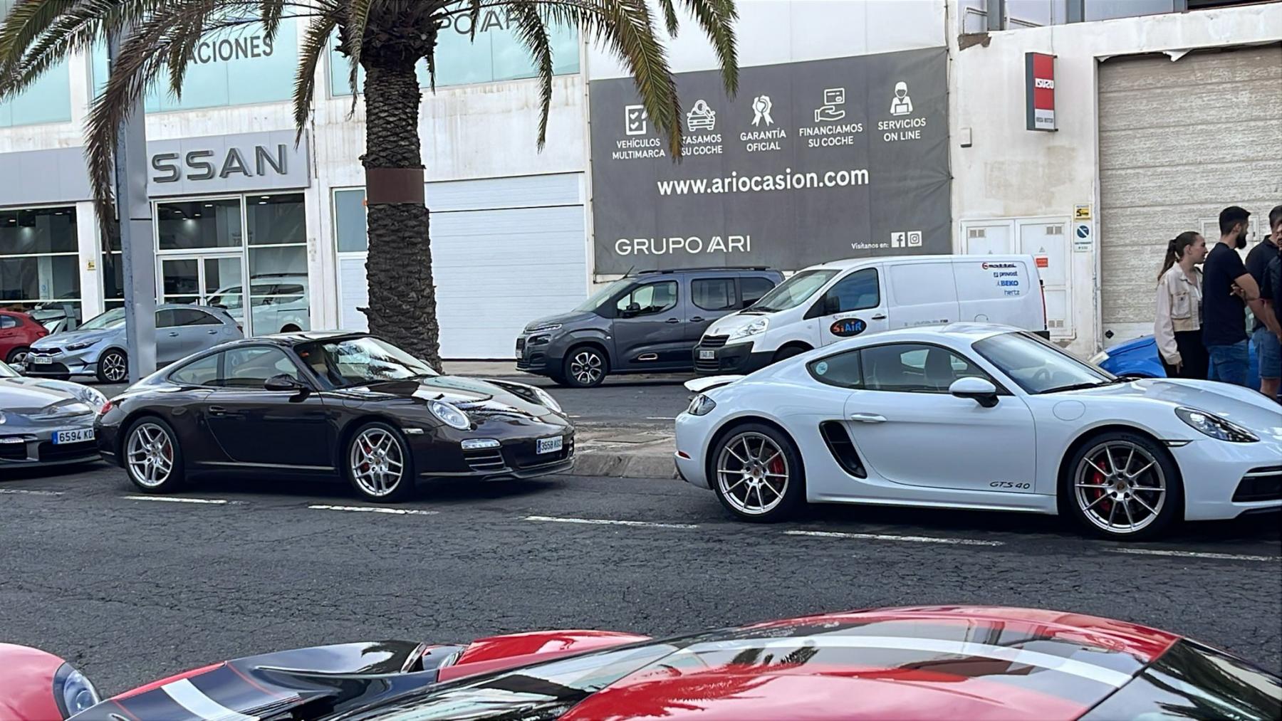 Concentración sorpresa este sábado en los aparcamientos de Alcampo en Telde de impresionantes coches de la marca Ferrari (entre otros vehículos de alta gama deportivos), que sorprendió a propios y extraños creándose una gran concentración de personas para admirar estos exclusivos vehículos que pocas veces se dan cita como ha sido en esta ocasión. Desde allí partieron a la capital de Gran Canaria, concretamente en la zona industrial de El Cebadal para girar visita al museo de coches clásicos y antiguos que recientemente abrió sus puertas.