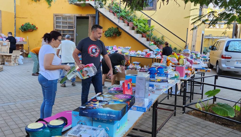 Este reparto se pudo producir gracias al esfuerzo del personal de la empresa Halcourier en Las Palmas que consiguió sacar los tres palés de juguetes cuando parecía que se tendría que esperar al lunes. Además el equipo de Unidos contó con la colaboración de varios voluntarios de la AV Tenesor en La Casa de la Condesa para realizar un reparto ordenado.