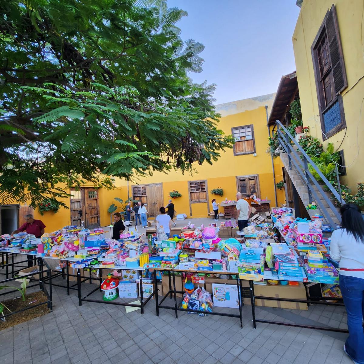 Este reparto se pudo producir gracias al esfuerzo del personal de la empresa Halcourier en Las Palmas que consiguió sacar los tres palés de juguetes cuando parecía que se tendría que esperar al lunes. Además el equipo de Unidos contó con la colaboración de varios voluntarios de la AV Tenesor en La Casa de la Condesa para realizar un reparto ordenado.