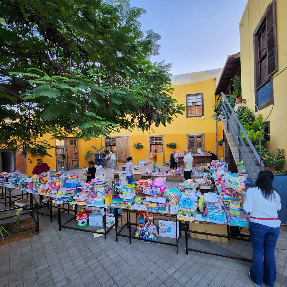 Este reparto se pudo producir gracias al esfuerzo del personal de la empresa Halcourier en Las Palmas que consiguió sacar los tres palés de juguetes cuando parecía que se tendría que esperar al lunes. Además el equipo de Unidos contó con la colaboración de varios voluntarios de la AV Tenesor en La Casa de la Condesa para realizar un reparto ordenado.