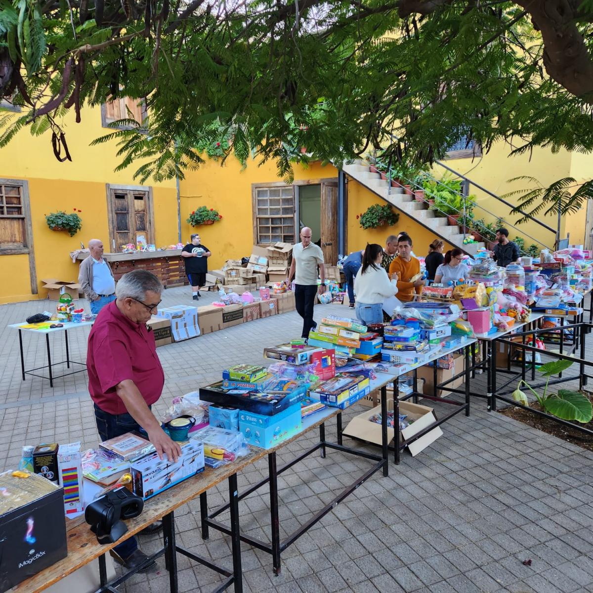 Este reparto se pudo producir gracias al esfuerzo del personal de la empresa Halcourier en Las Palmas que consiguió sacar los tres palés de juguetes cuando parecía que se tendría que esperar al lunes. Además el equipo de Unidos contó con la colaboración de varios voluntarios de la AV Tenesor en La Casa de la Condesa para realizar un reparto ordenado.
