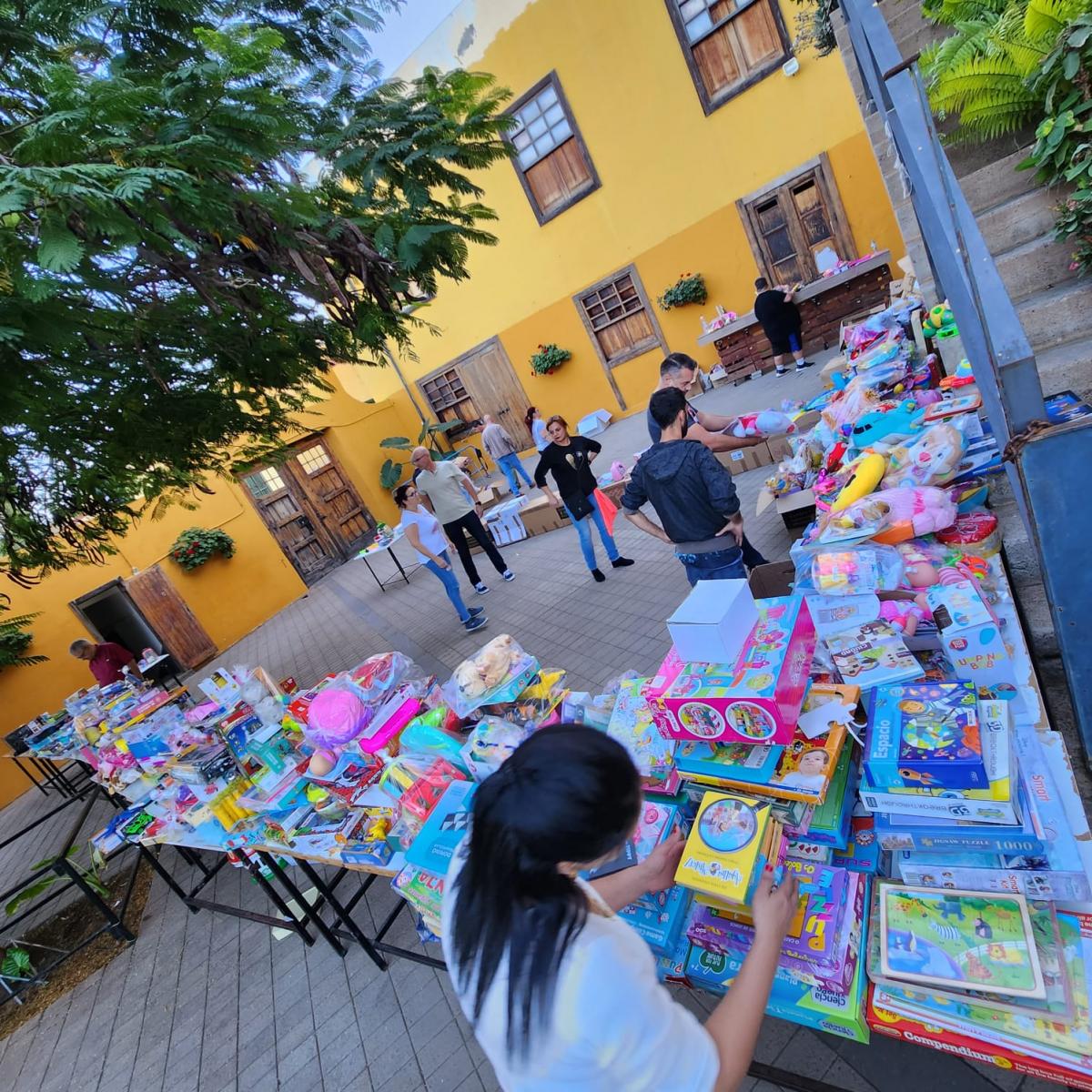 Este reparto se pudo producir gracias al esfuerzo del personal de la empresa Halcourier en Las Palmas que consiguió sacar los tres palés de juguetes cuando parecía que se tendría que esperar al lunes. Además el equipo de Unidos contó con la colaboración de varios voluntarios de la AV Tenesor en La Casa de la Condesa para realizar un reparto ordenado.