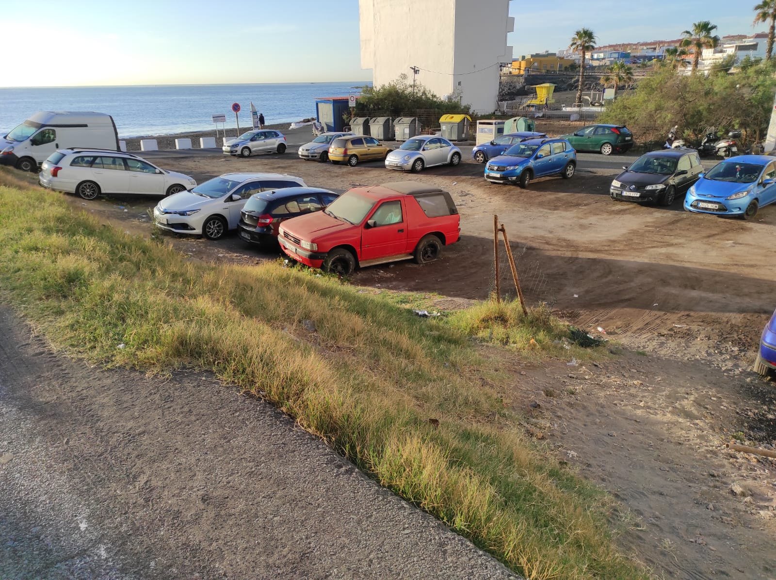 Vecinos de la calle Lila en la Playa de La Garita (Telde), denuncian a través de ONDA GUANCHE el abandono de un vehículo de la marca y modelo Opel Frontera, en el aparcamiento de tierra que está a unos metros de la entrada principal de la playa, desde hace varios meses. El mismo presenta un aspecto lamentable con neumáticos sin aire y óxidos laterales.